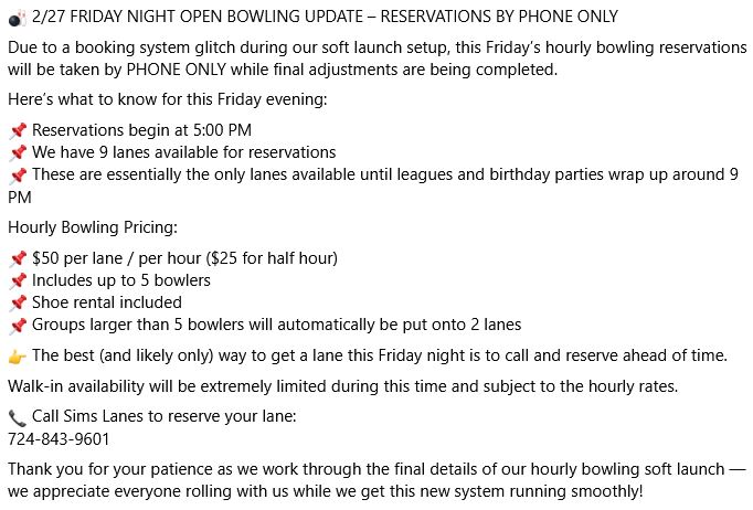 SIMS BOWLING LANES!
