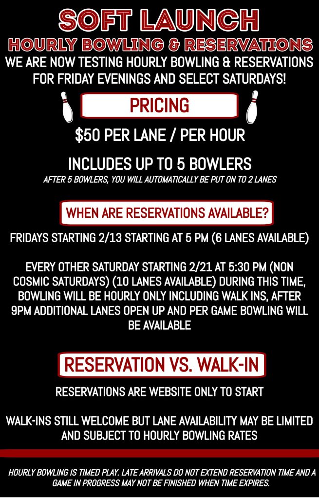 10 Lanes Reservation Only 5:30PM-9PM